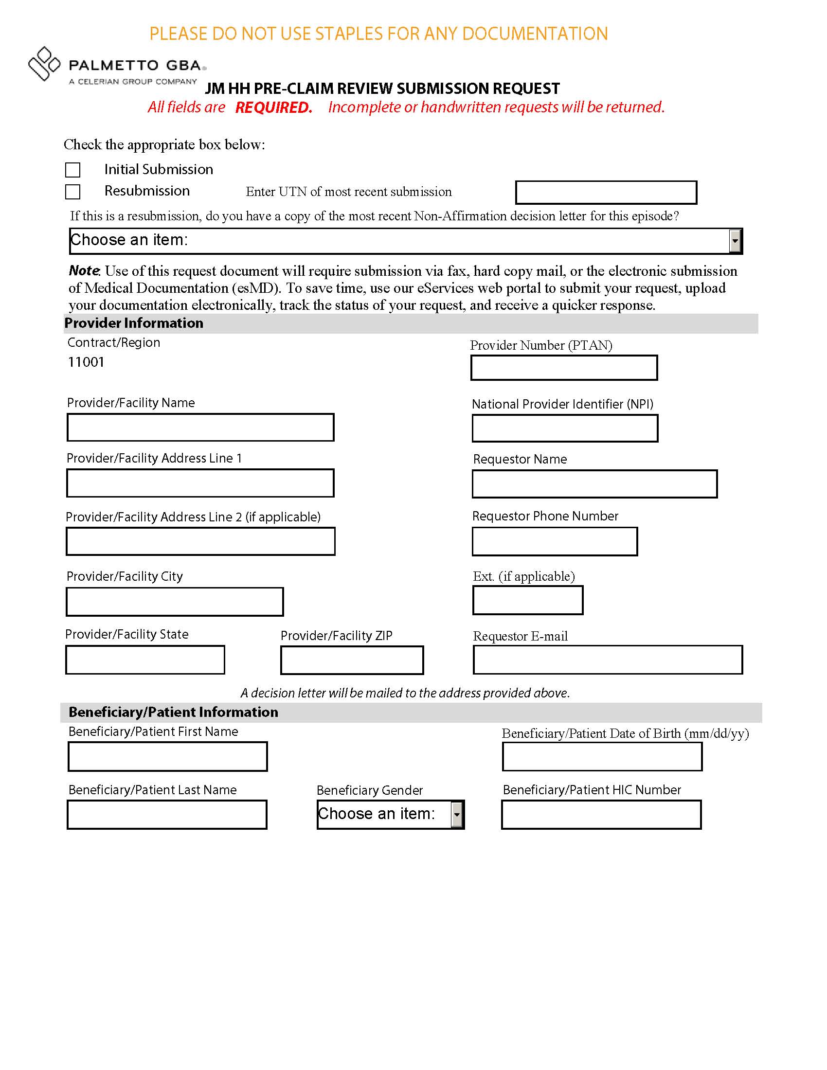 Pre-claim review submission form